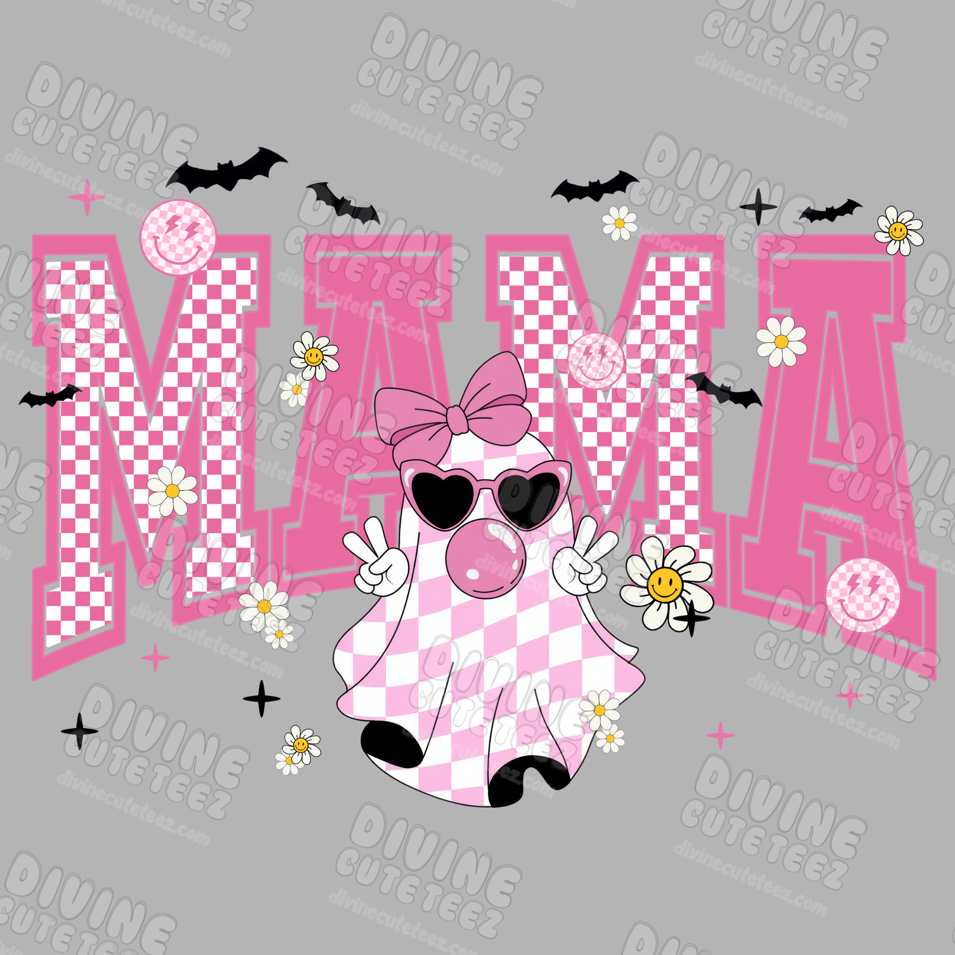 Pink Ghost Checkered Mama DTF Transfer