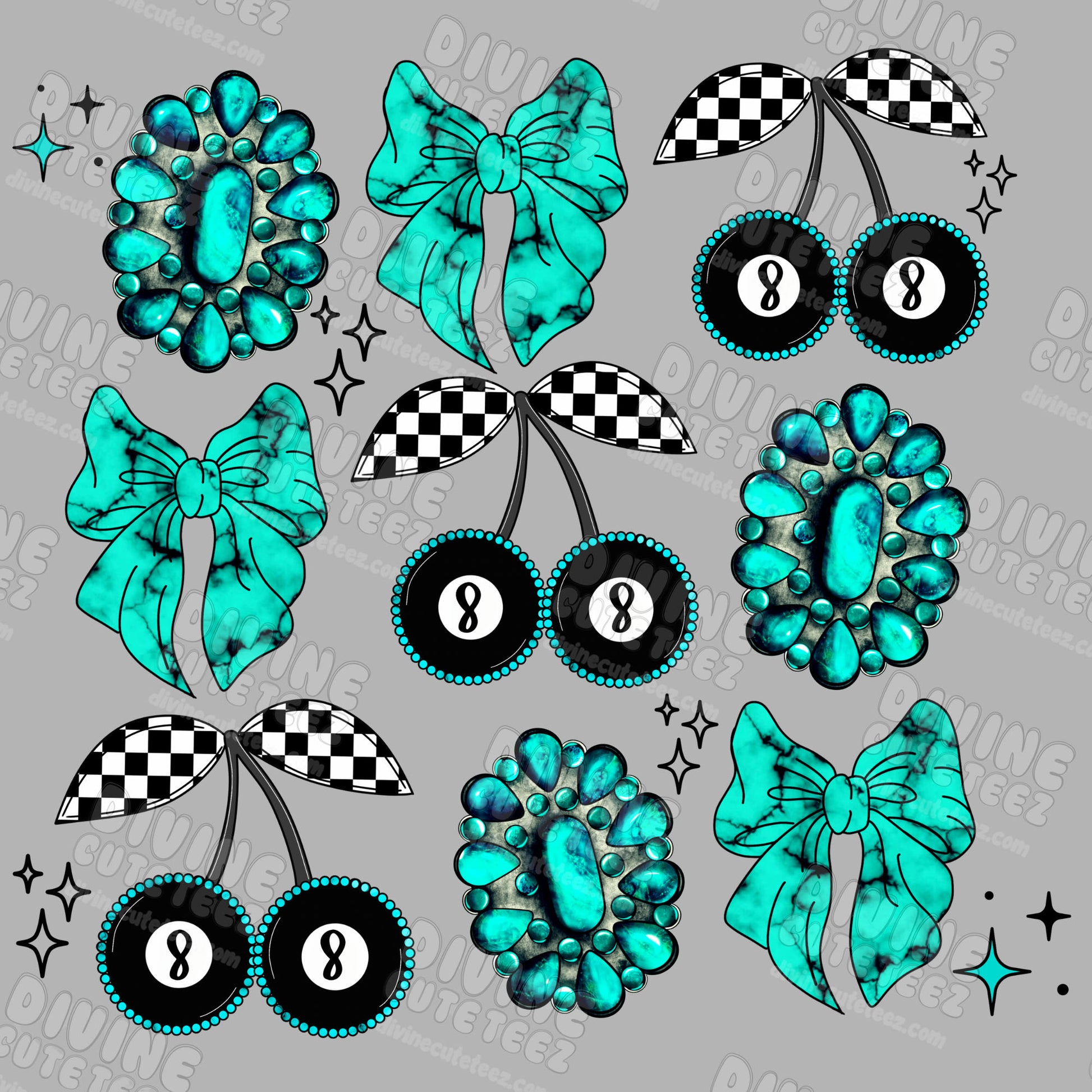 Western 8ball Collage DTF Transfer
